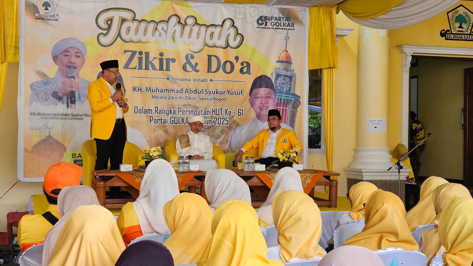 ​”Usia 61 tahun perjalanan Golkar sangat luar biasa. Angka ini melambangkan kematangan. Artinya, Golkar harus matang dalam bersikap, matang berpolitik, dan matang berkiprah atau berkarya untuk melaksanakan tugas, berkarya untuk negeri,” jelas Ustadz Syukur.