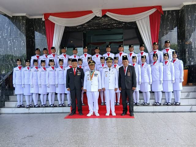 Maulana menghadiri Upacara Pengibaran Bendera Merah Putih HUT RI Ke 80 di Lapangan Kantor Walikota Jambi